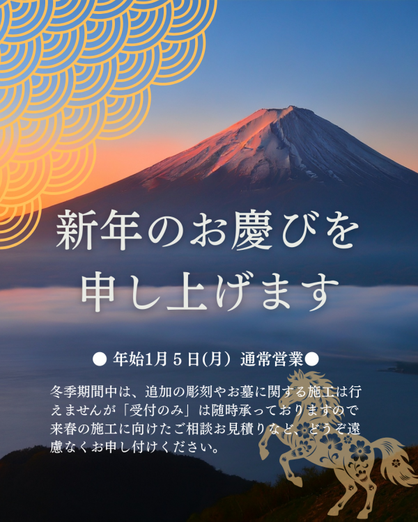 冬季期間中は追加の彫刻やお墓に関する施工は行えませんが、「受付のみ」は随時承っております。来春の施工に向けたご相談やお見積りなど、どうぞお気軽にお申し付けください。